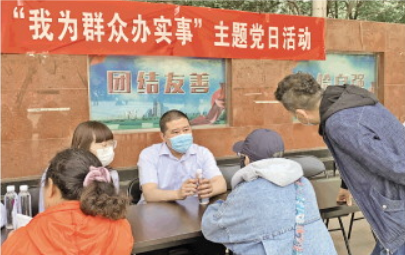 图为裴昱(中)在“我为群众办实事”主题党日活动上为群众答疑解惑。 受访者供图
