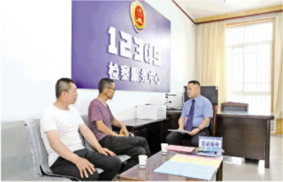 图为王文喜(右一)在检察服务中心接待来访群众。 本报通讯员 周润霞 摄