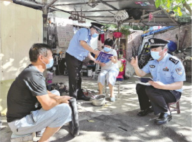 图为曹金生(右一)走访辖区群众,进行夏季安全生产检查。