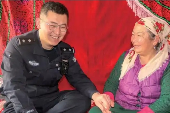 李玉桐是新疆克州边境管理支队喀拉布拉克边境派出所哈拉布拉克村警务室警长,1994年3月出生的他才30岁,却已然满头白发,被当地群众亲切的称为“白发警长”。