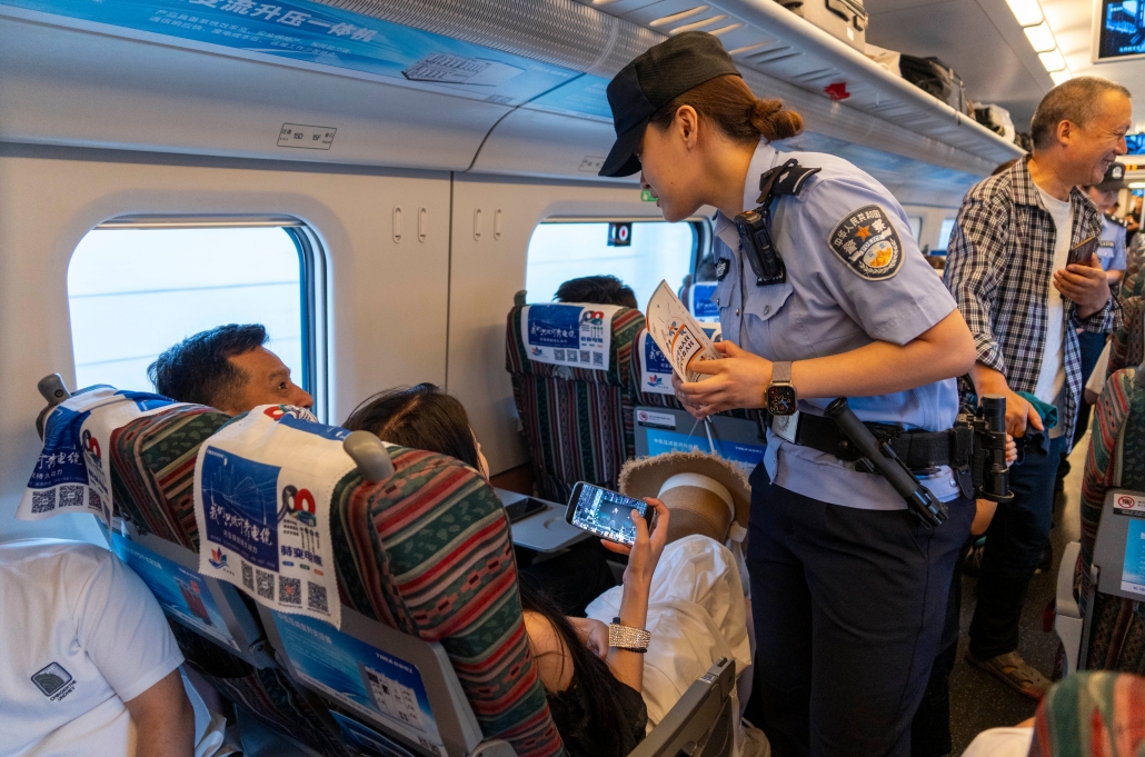 7月13日,正值暑运高峰与旅游旺季叠加,客流量持续攀升,乌鲁木齐铁路公安处乘警支队精准发力,全面开展打击整治突出违法犯罪专项行动,为旅客出行保驾护航。其中,“丝路风华”女子乘警组主动担当作为,通过加大对车厢、站台的巡视密度,及时排查安全隐患、化解矛盾纠纷,提升见警率与管事率。同时,面向学生开展案例讲解、互动问答,深入浅出地宣传普及防猥亵、防电诈和乘车安全知识,切实提高学生的自我保护意识与防范能力,全力确保暑运期间旅客平安出行。