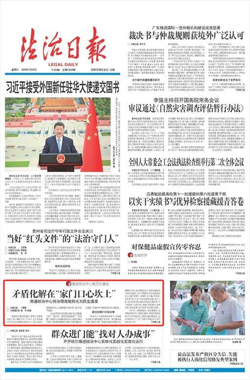 今年4月,为积极落实上级部署要求,加快推进综治中心规范化建设,南通市委政法委召开全市综治中心规范化建设推进会,出台《综治中心“三定”文案》《市综治中心运行机制》等文件,完善《县级综治中心“线上+线下”矛盾纠纷多元化解业务流程图》,激活“调解优先、分层递进、司法兜底”多元共治解纷效能。目前,群众诉求平均办结时限已压缩至7.2天,重复走访率下降了63%。