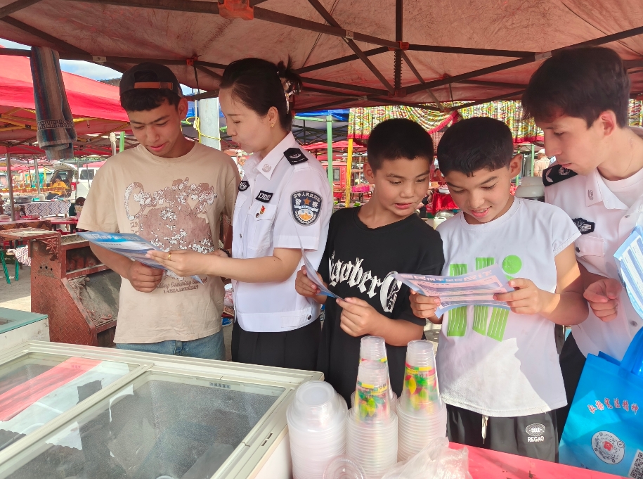 为进一步提升群众防范电信网络诈骗意识,8月5日,新疆伊宁市司法局潘津司法所工作人员利用巴扎(集市)日人员密集、流动性大的特点,通过发放宣传资料、讲解反诈案例的方式,普及反诈知识,为群众的“钱袋子”系上“安全锁”。