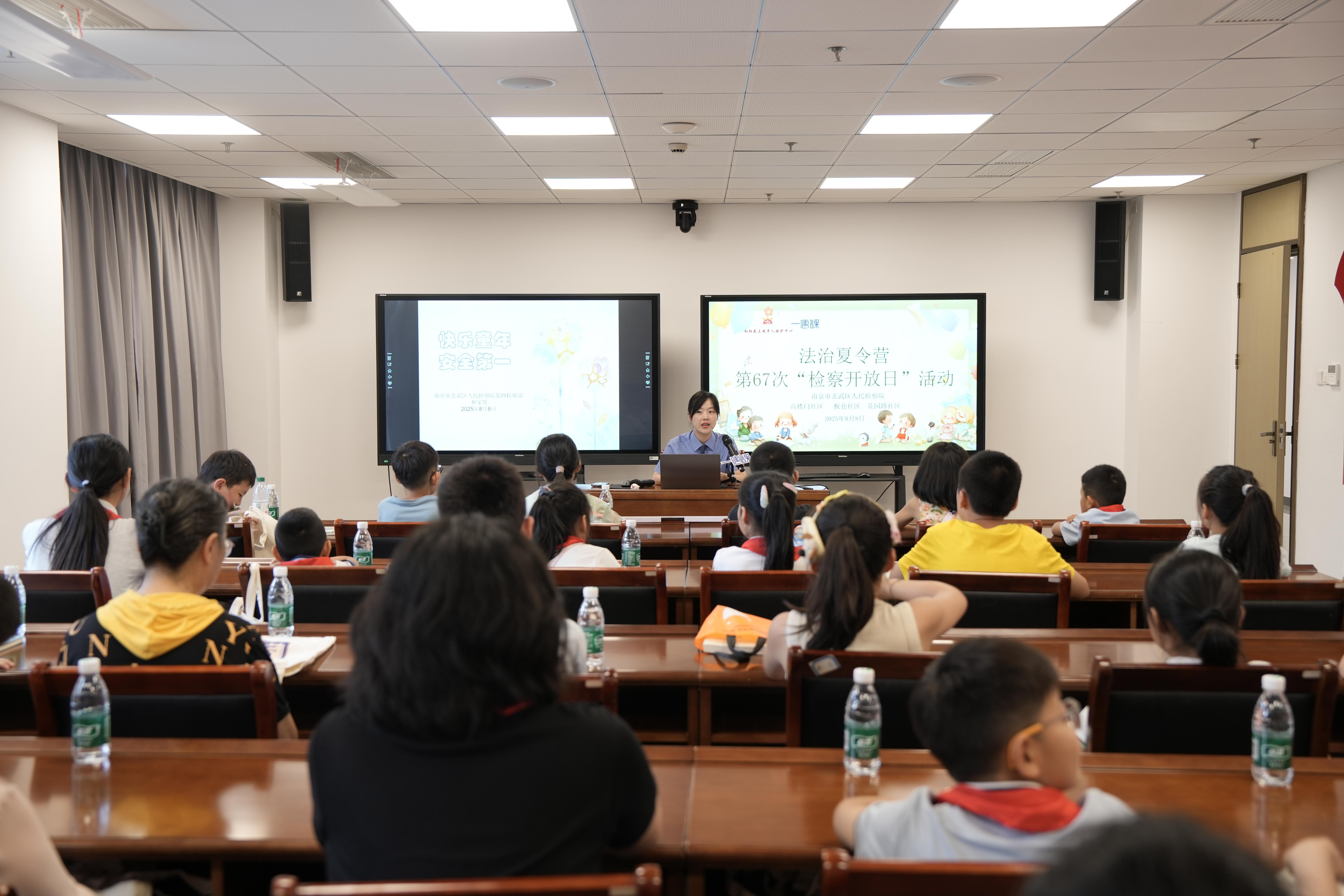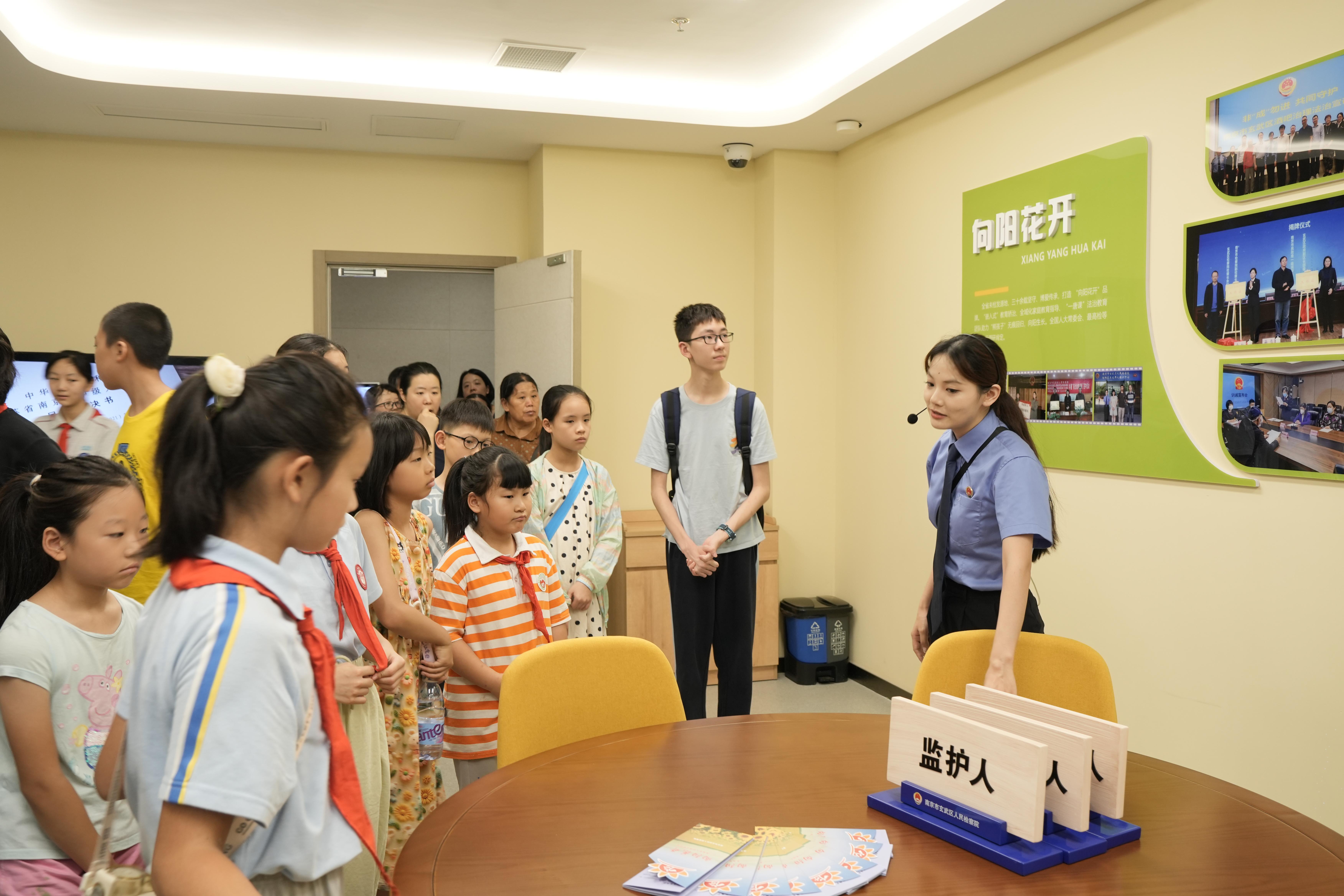 8月8日下午,来自江苏省南京市玄武区3个社区的20余名小朋友在家长与社区志愿者的陪伴下,来到了南京市玄武区人民检察院,开启了一场别开生面的沉浸式法治教育之旅。