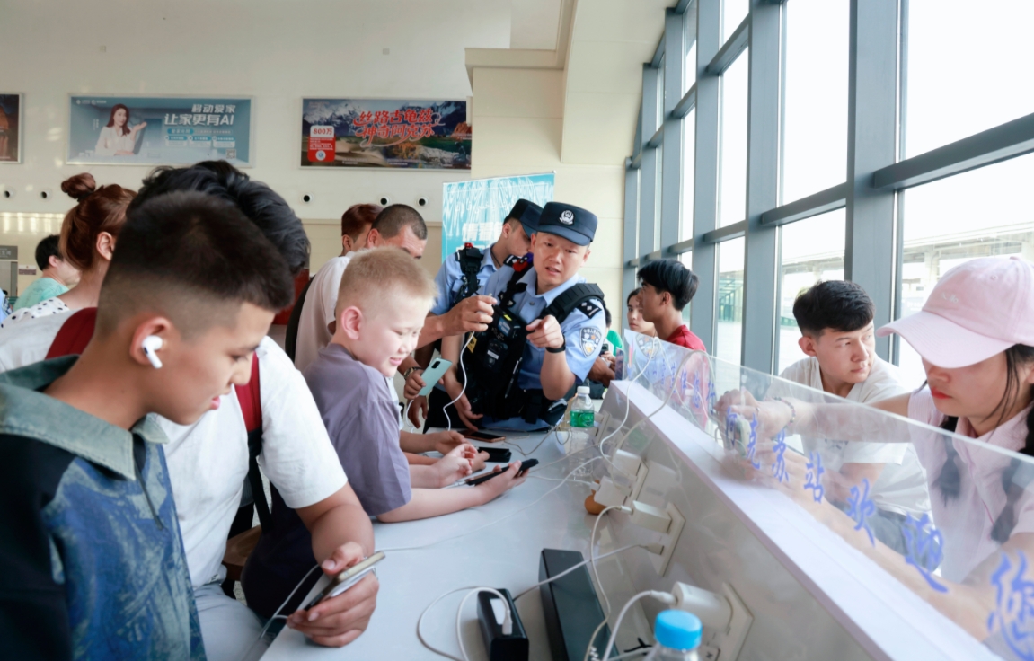“出现警情后,指挥室会第一时间通知相关警力到现场处置。”所长王彦帅表示,在车站秩序维护上,派出所针对暑运客流高峰特征,科学调配警力资源,加密售票厅、候车室等重点区域的巡逻频次与管控力度,及时疏导拥堵人群,引导旅客有序购票、安检、候车。此外,民警主动延伸服务触角,为旅客提供问询指引、失物查找等便民服务。