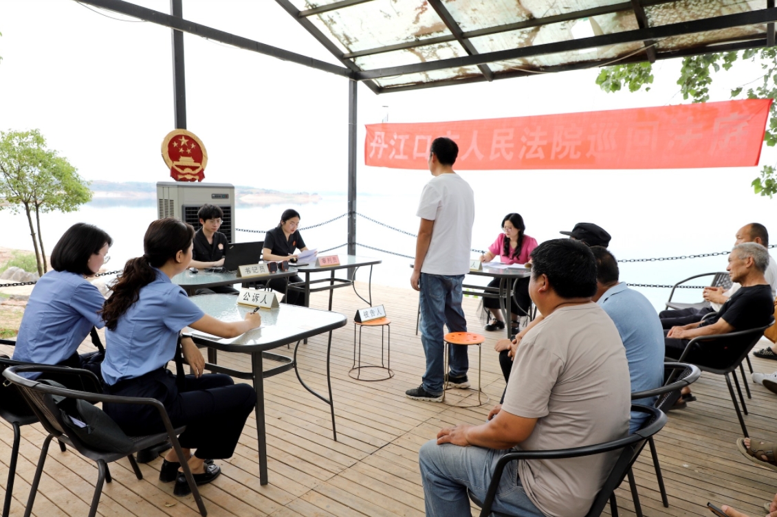 图为2025年6月4日,丹江口市法院在丹江口库区百喜岛景区巡回审理一起非法狩猎罪案件,村(两委)、附近商户、游客近30余人旁听庭审。