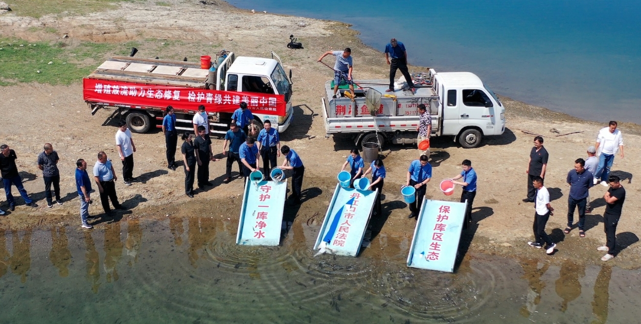 图为丹江口市检察院会同法院、库区综合执法大队组织开展增殖放流活动。