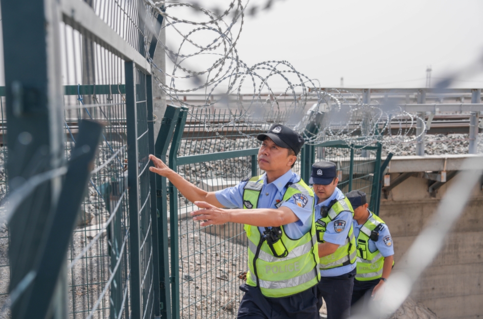 为保障列车运行安全,近期,乌鲁木齐铁路公安局哈密公安处红柳河南站派出所民警加强对辖区铁路沿线的安全巡查,及时排查和消除风险隐患,织密铁路安全“防护网”。