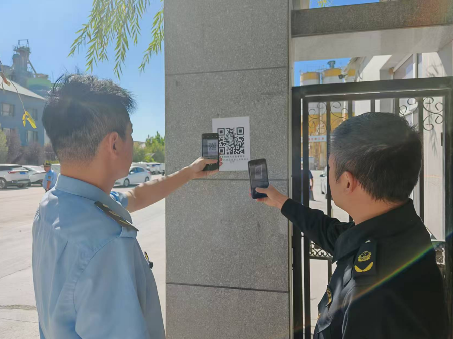 图为察布查尔锡伯自治县执法部门工作人员开展“扫码入企”联合检查。范如赞 摄