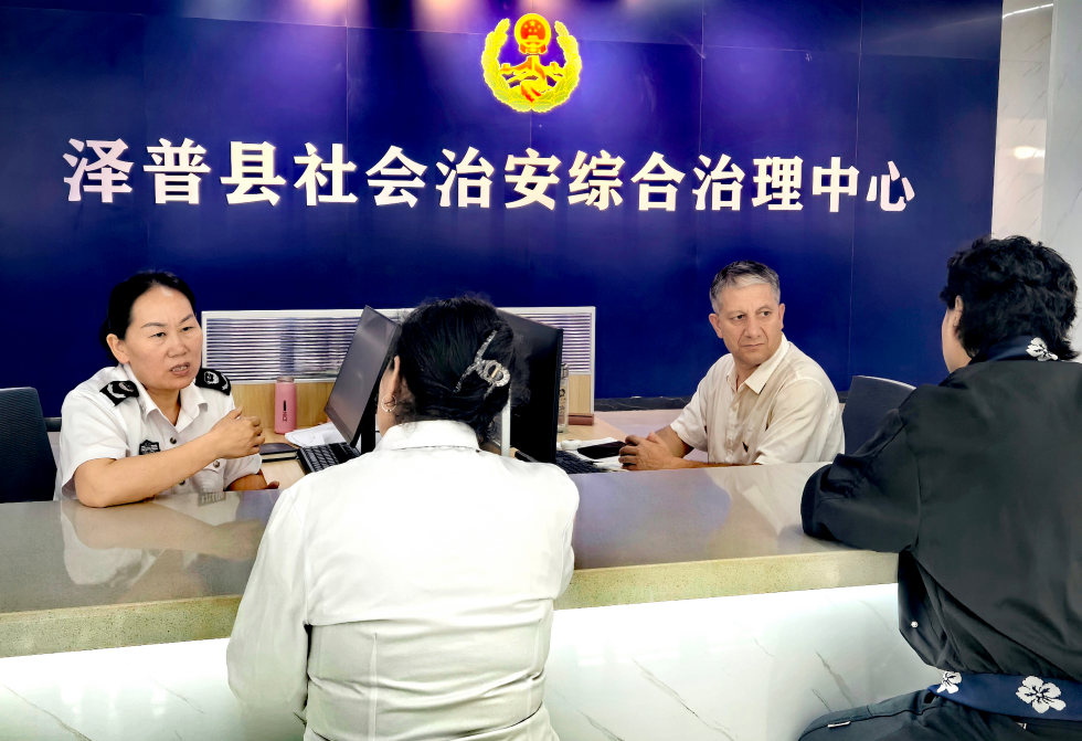 图为9月18日,泽普县综治中心办事大厅工作人员正在接待来访群众。潘从武 摄