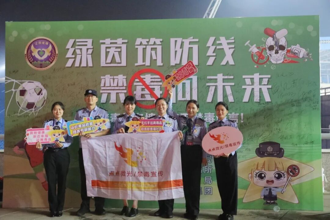 赛前球迷互动区里,江苏省女子强制隔离戒毒所“点点微光”禁毒宣传团队积极行动,联合镇江市体育局、镇江市文化广电和旅游局、镇江市文化广电产业集团等单位,为镇江、无锡球迷送上禁毒知识和禁毒文创。“点点微光”禁毒宣传吉祥物“星星”也惊喜现身,与球迷代表在禁毒宣誓墙上写下禁毒承诺,共同喊出“镇江无锡,共筑防线”的青春无毒誓言。