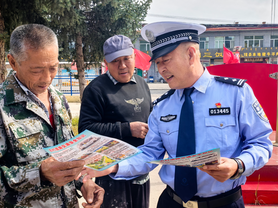 为进一步提高农村地区居民安全出行意识,预防道路交通事故,9月27日上午,内蒙古自治区呼和浩特市和林格尔县公安局交通管理大队组织民警走进新店子村,以“美丽乡村行”为主题,开展形式多样的交通安全宣传活动。