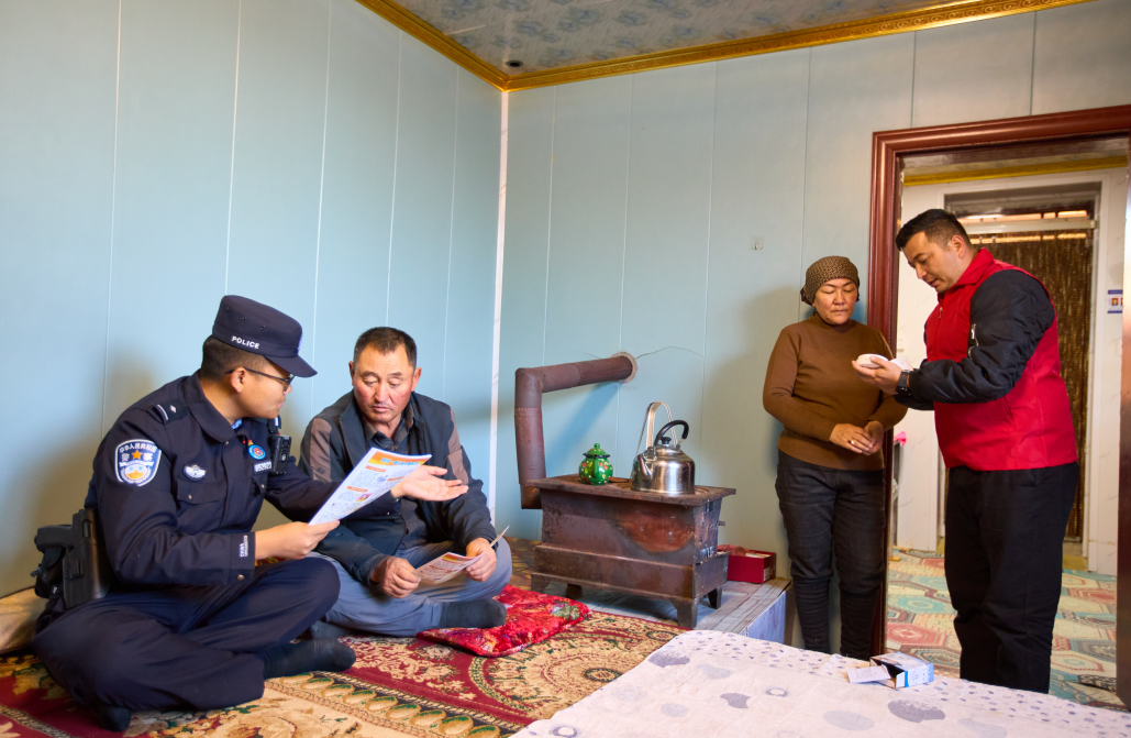 随着天气降温,新疆北疆地区进入冬季采暖期。10月10日,新疆博州边境管理支队博乐边境管理大队海西边境派出所民警进村入户开展冬季取暖安全走访和防范一氧化碳中毒宣传。