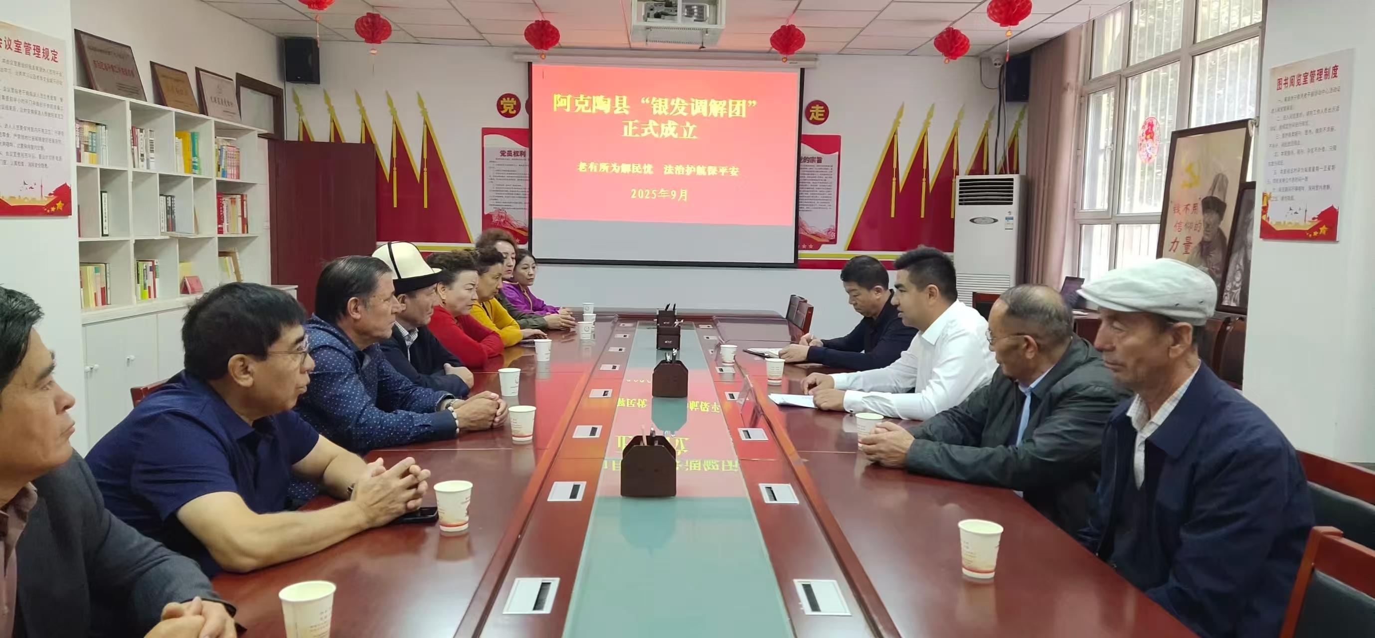 近日,新疆阿克陶县委政法委、县委组织部充分运用公检法及相关职能部门退休干部资源,组建成立“银发调解团”,正式进驻阿克陶县综治中心,推动矛盾纠纷调处化解、青少年关心关爱和法律政策解读,为基层治理注入温暖而坚实的“银发动能”。