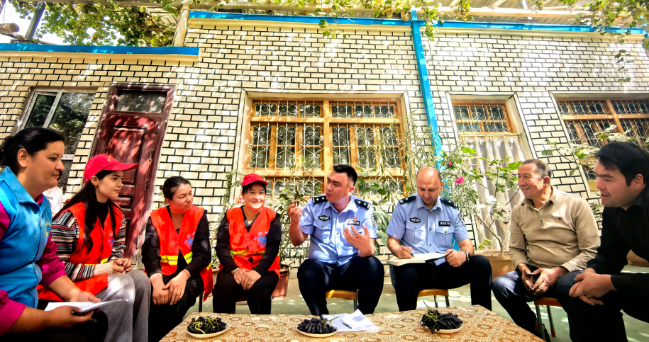 麦麦提艾麦尔和同事经常给“石榴大妈”们上课,讲法律法规、惠民政策,教反诈防骗、风险防范知识,“石榴大妈”们接着讲给乡亲们听,带着他们干。如今,村里闹心事少了,欢笑声多了。