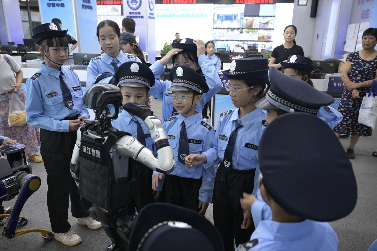 “这个无人机机巢好酷!我能和它合影吗?”10月18日,在浙江省杭州市公安局滨江区分局巡特警大队营区内,9岁的学生小王兴奋地拉着特警队员的衣角问道。当天,由杭州市公安局滨江区分局与滨江团区委共同策划的第二期“滨江智警少年团”正式开营,通过社会公开征集的30名来自滨江区“家门口青少年宫”的孩子们,走进这个充满神秘色彩的地方,开启了一场别开生面的警营体验之旅。