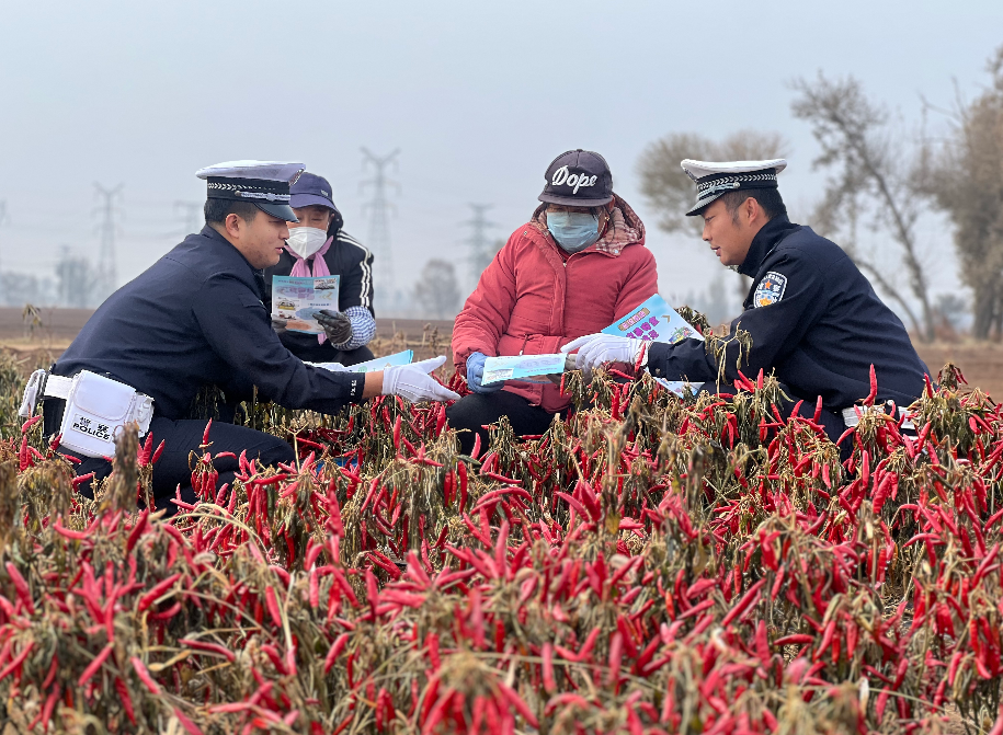 图为民警来到赛罕区榆林镇前乃莫板村向村民宣传交通安全知识。