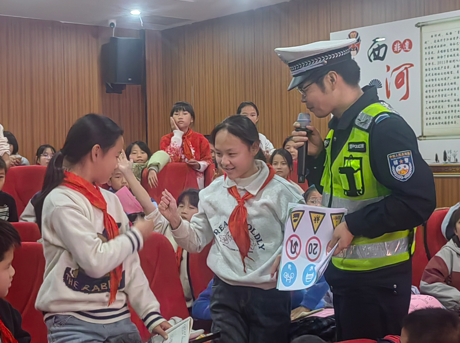 连日来,江西省庐山市公安局交管大队组织民辅警走进辖区中小学校,通过PPT演示、趣味游戏、有奖问答等方式宣讲交通安全知识,进一步加强中小学生“知危险、会避险”的自我防护能力。