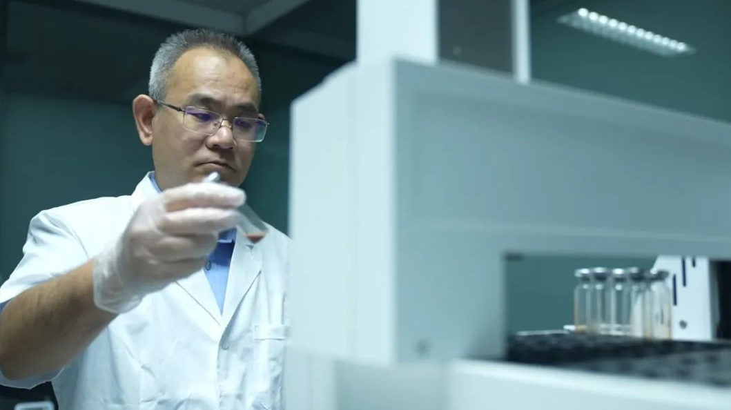 图为张雷在实验室进行血液分析鉴定。