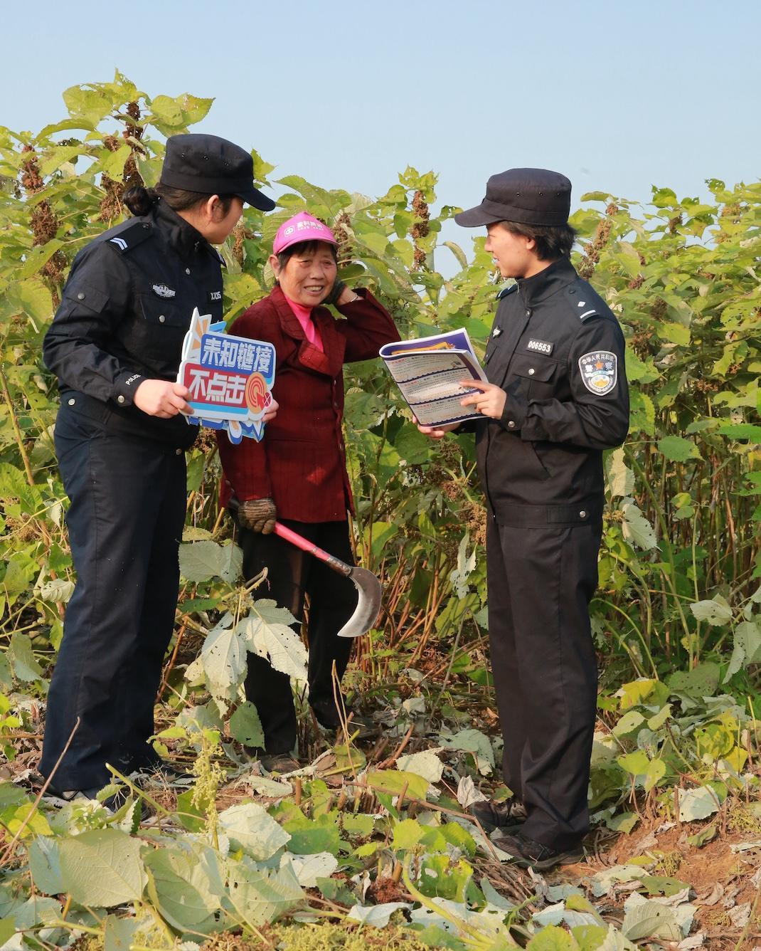 11月18日,湖北省黄石市公安局开发区·铁山区分局太子派出所民警走进太子镇朋畈村,以“拉家常”的方式摸排矛盾纠纷,并向在苎麻地劳作的村民精准宣传反诈知识。