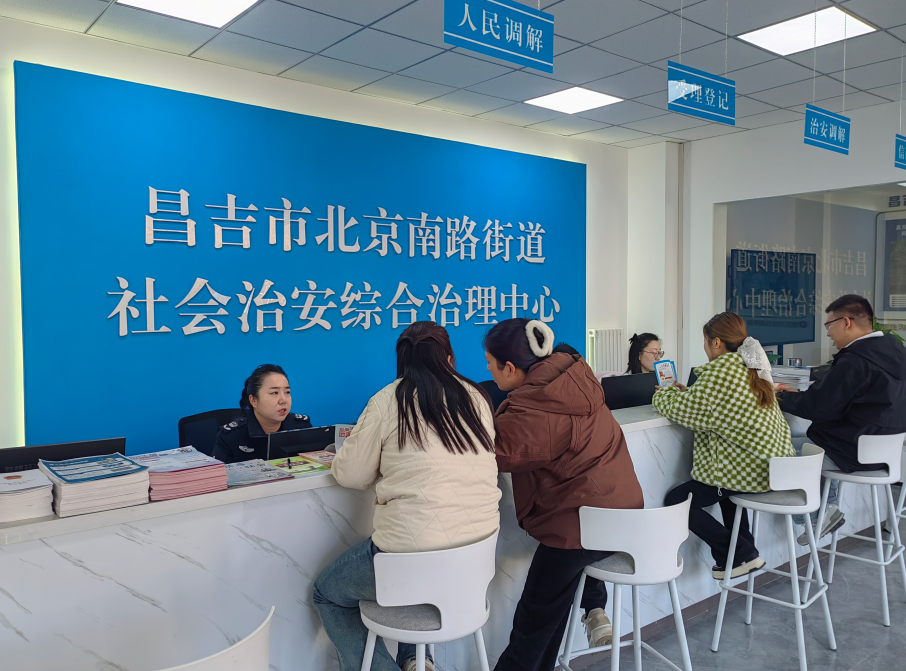 走进2000多平方米的昌吉市综治中心,法律服务、矛盾调解、信访接待等多个窗口一字排开,法院、检察院、妇联等20个部门的42名专业人员常驻办公,实现“群众只进一门、事务一站办结”。作为三级联动体系的“大脑中枢”,这里不仅承担着重大矛盾纠纷的统筹协调职能,更搭建起“百姓点单、中心派单、部门接单、企业评单”的高效处置机制。