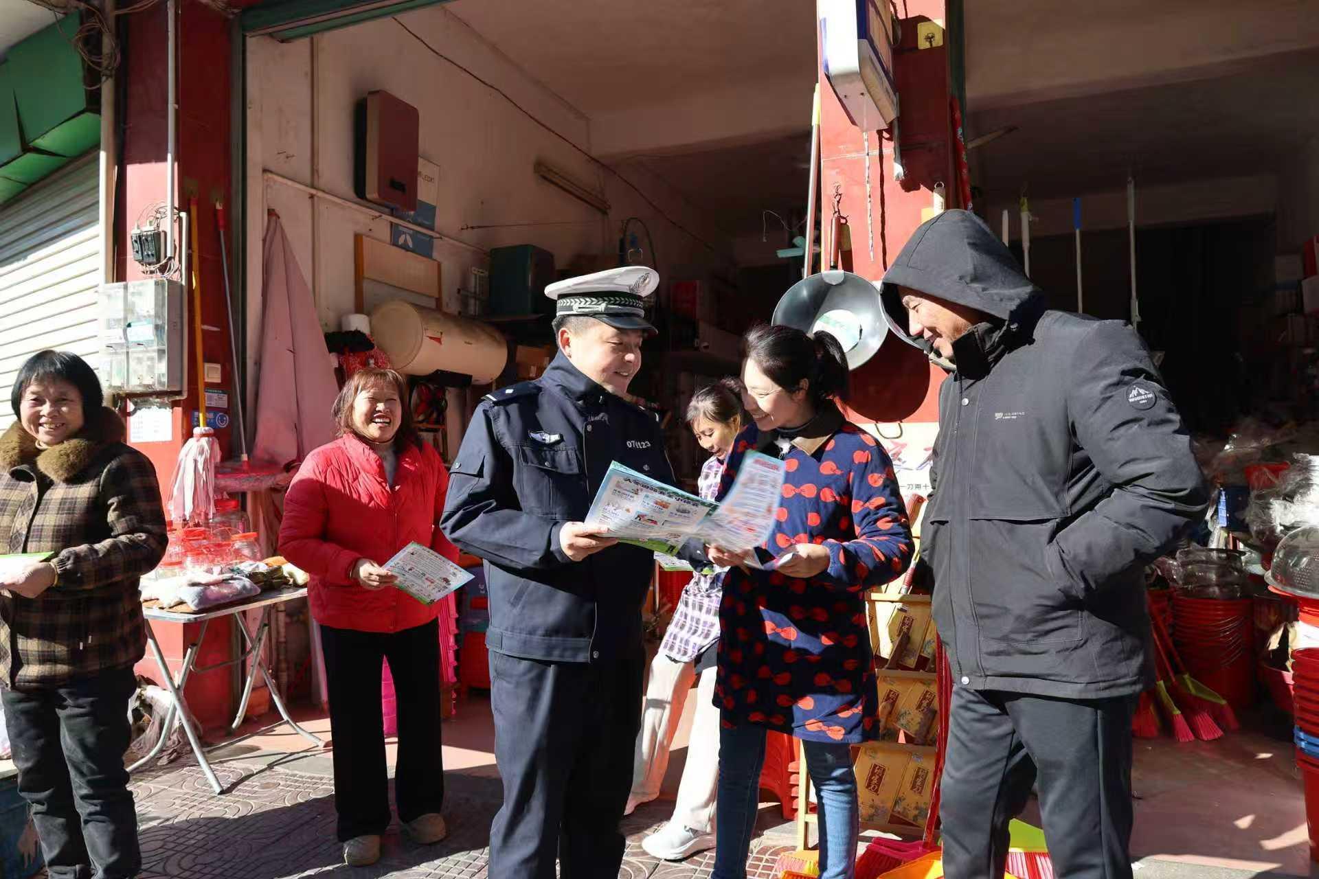 图为12月15日上午,民警在长胜镇圩镇向群众讲解交通安全知识。