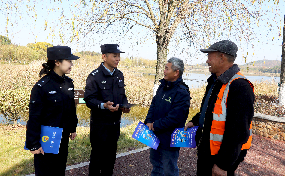 图为12月22日,民警在分宜县湿地公园向群众宣传反诈知识。
