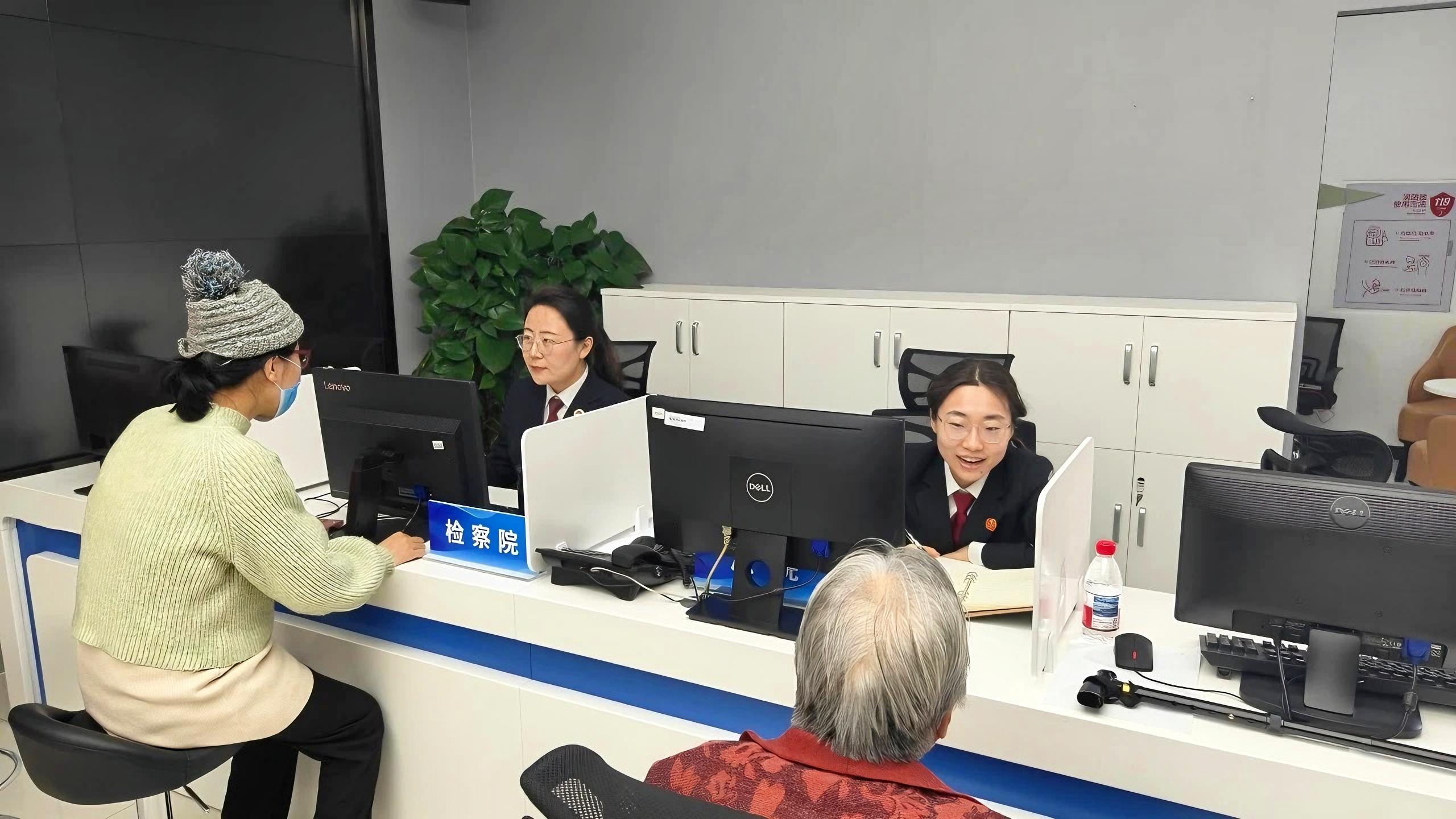 图为入驻区级综治中心的职能部门耐心倾听群众诉求,帮助解决难题。
