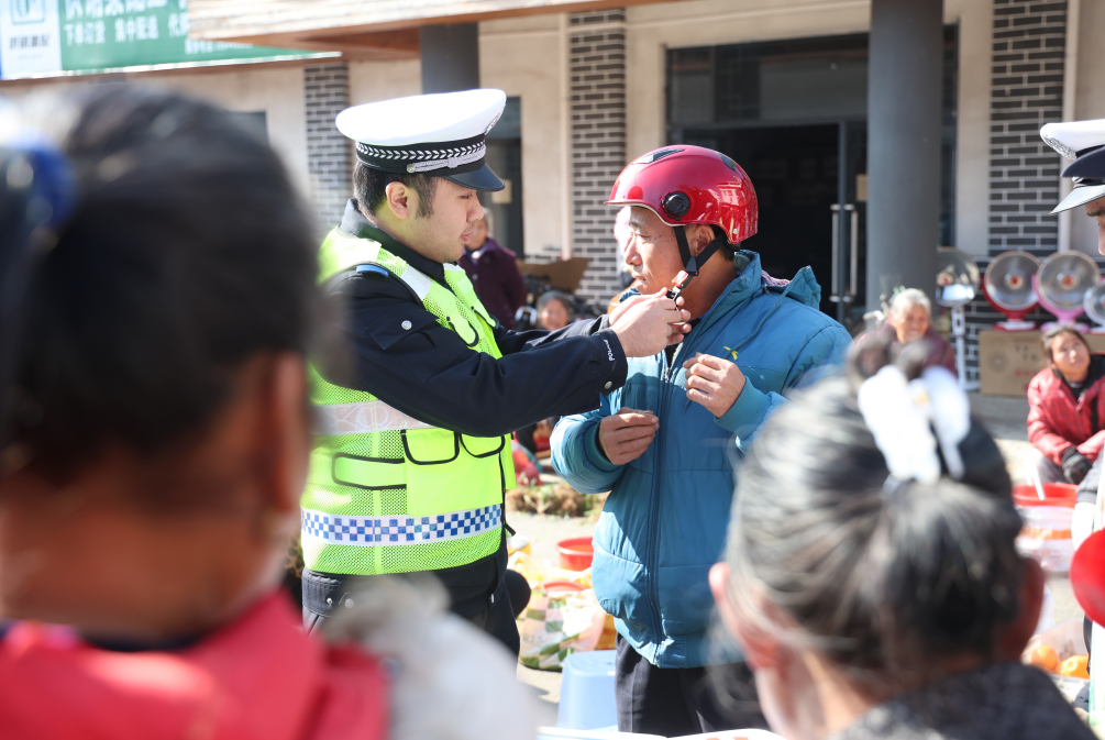 连日来,江西省赣州市公安局交管支队宣传小分队走进乡镇集市,以互动问答、喇叭宣讲、现场示范戴头盔等方式,向村民普及“证件齐、戴头盔、不酒驾”等出行规则,把交通安全知识送到群众身边,筑牢乡村出行安全防线。