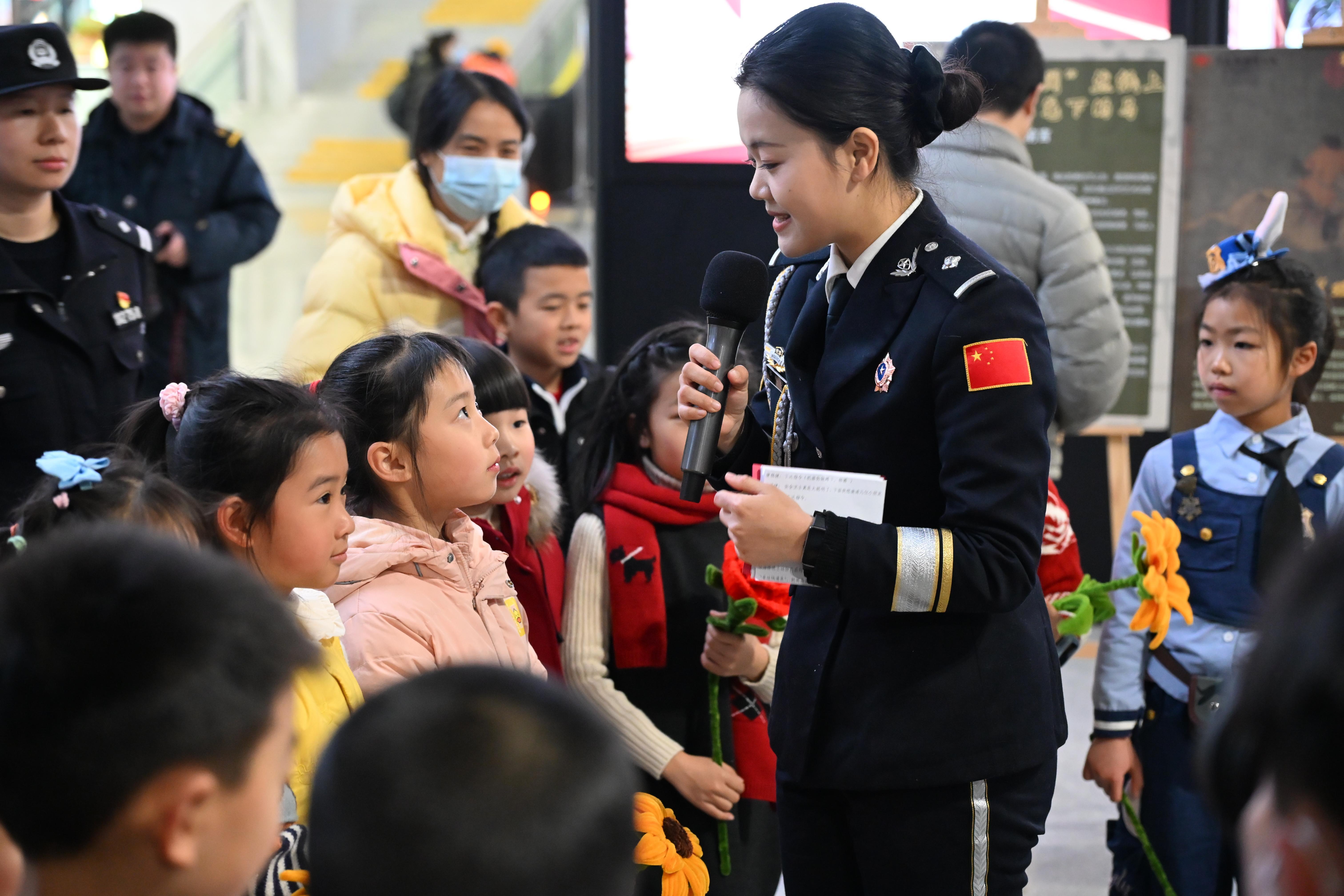 2月3日,春运返程客流正逐步攀升。南宁铁路公安局柳州公安处桂林站派出所在候车室开展铁路安全宣传,通过趣味有奖竞答向旅客普及出行安全知识,护航春运温馨有序。