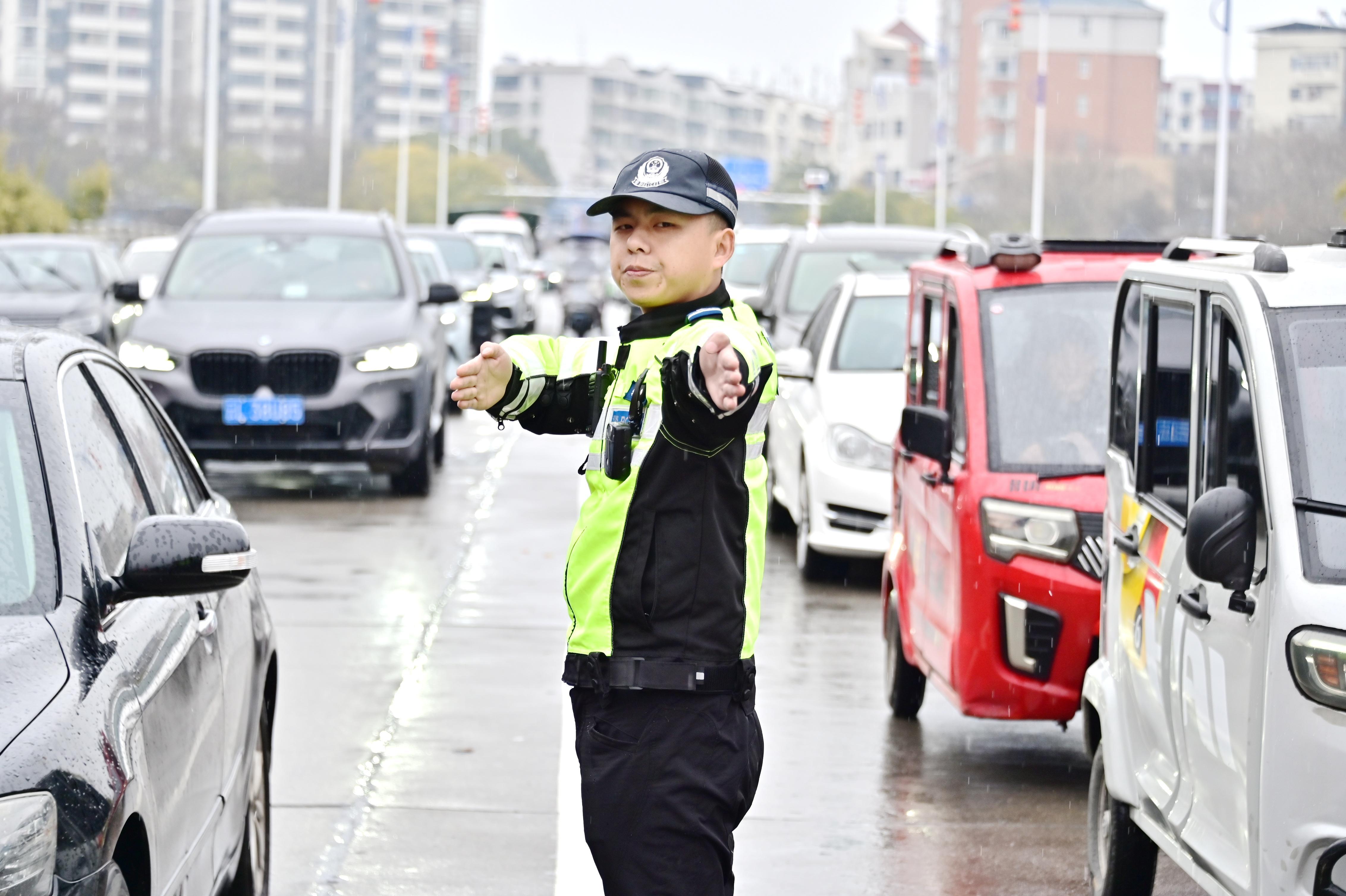 2月9日,江西省武宁县出现低温雨雪天气,武宁县公安局交管大队民辅警按照春运交通安全保卫工作部署,主动作为、靠前执勤,冒雨深入城区车流量大的道路开展交通秩序动态管控,指挥疏导车流有序通行,护航群众春运出行安全。