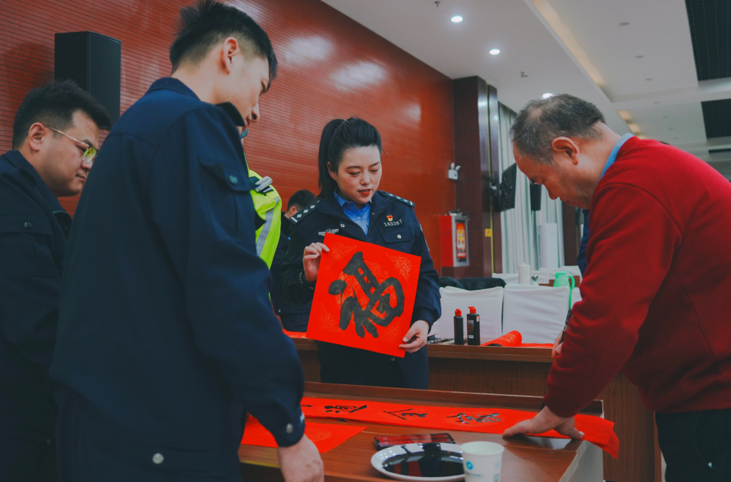 2月11日,新疆沙雅县文化馆组织民间艺术家及书法爱好者走进县公安局,开展“书香送福进警营·翰墨浓情颂平安”主题文化活动。艺术家们以笔墨为载体,将真挚的祝福与崇高的敬意凝于一副副春联之中,为常年奋战在维护稳定、服务群众第一线的公安民辅警送去别样的文化“年货”和新春问候。