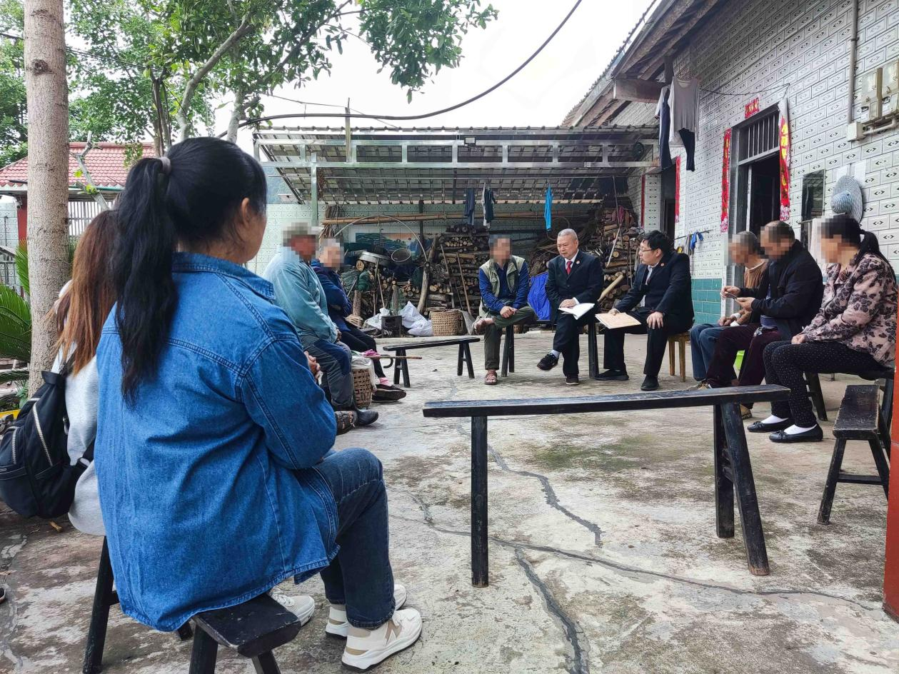 2023年5月9日,安岳法院流动诉讼服务队前往该村村委会,联合村干部、村民开展“院坝调解”。首先,邀请村干部就国家高标准农田建设总体方针及农田整治过程中涉及的相关问题向原、被告和旁听群众进行政策宣传,调解法官再通过“法、理、情”融合的方式展开调解引导,提升当事人对国家稳粮增收相关政策的认知度,并发动旁听群众多方劝解。最终,被告对不经商量损坏树木的行为向原告赔礼道歉并请求谅解,原告也主动放弃相关赔偿要求,并承诺将尽快处理杂树,双方握手言和,纠纷得到彻底化解。该村村委会与村民对法院通过调解方式让农田整治顺利推进予以“点赞”。