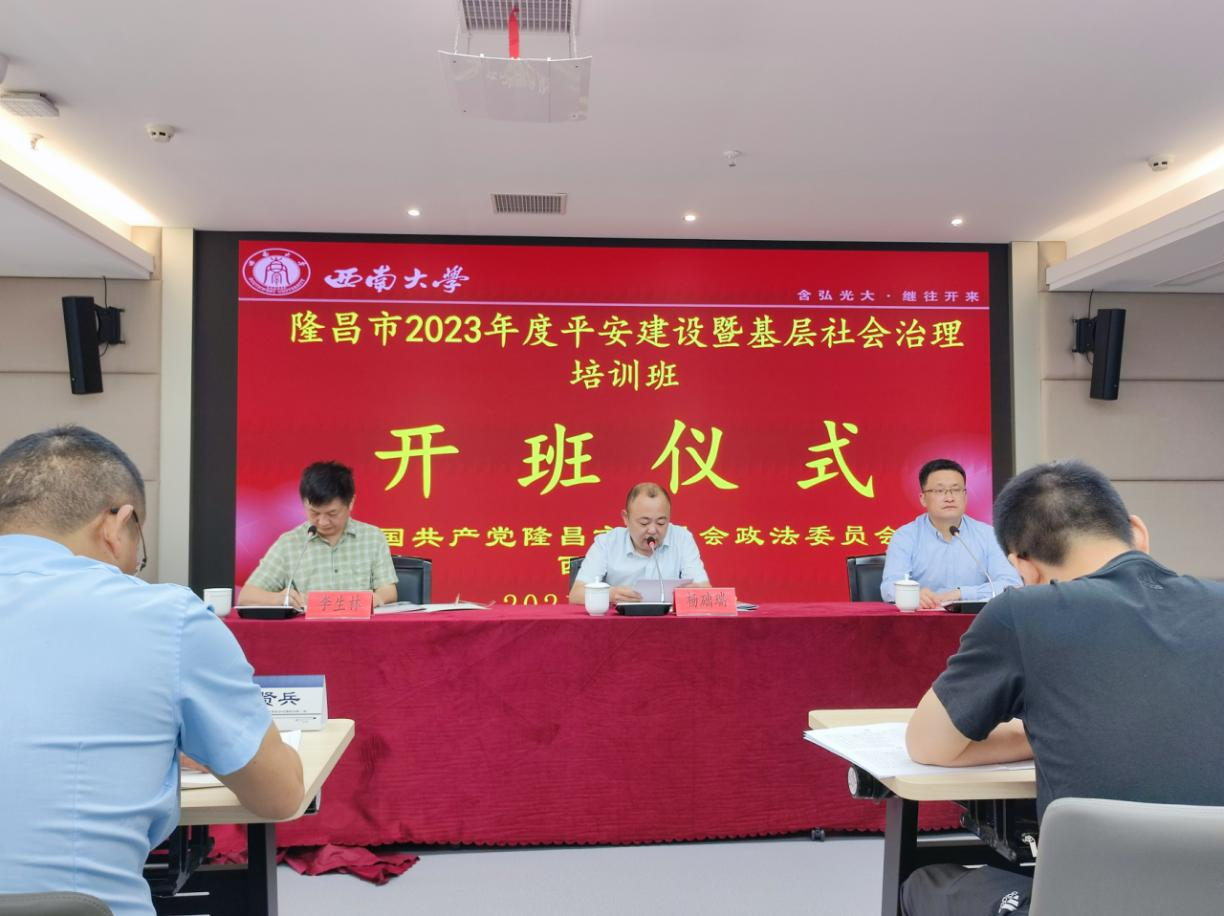 为进一步提升隆昌政法工作现代化水平,5月15日上午,四川省隆昌市2023年平安建设暨基层社会治理培训班在西南大学顺利开班。该市市委常委、政法委书记杨础瑞出席开班仪式并作动员讲话,西南大学人工智能学院党委书记夏俊致欢迎辞,各镇(街道)政法委员、社治办主任,政法干警,相关市级部门领导和业务骨干参加本期培训班。