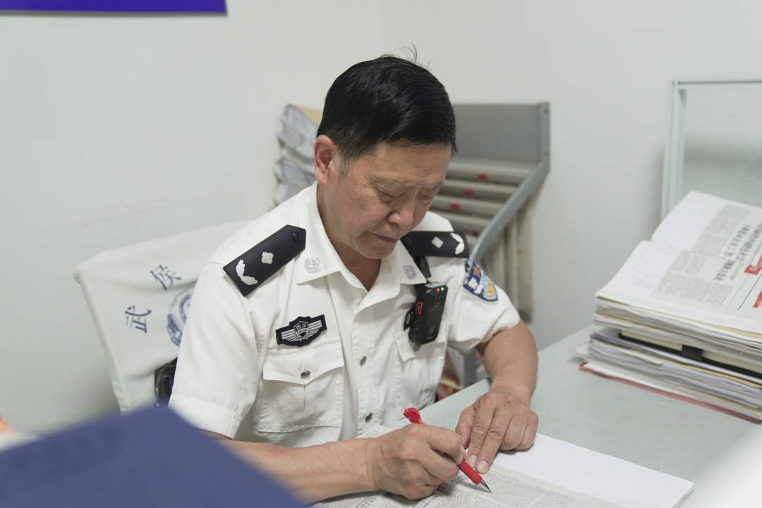 每天早会前,所上的老“国优”、社区警务队民警郭学彬在办公桌前翻看工作笔记本,本上认认真真手写记录着每日工作、例会内容、重点任务、完成情况……他逐页翻看更新,对照完成进度“销账”。