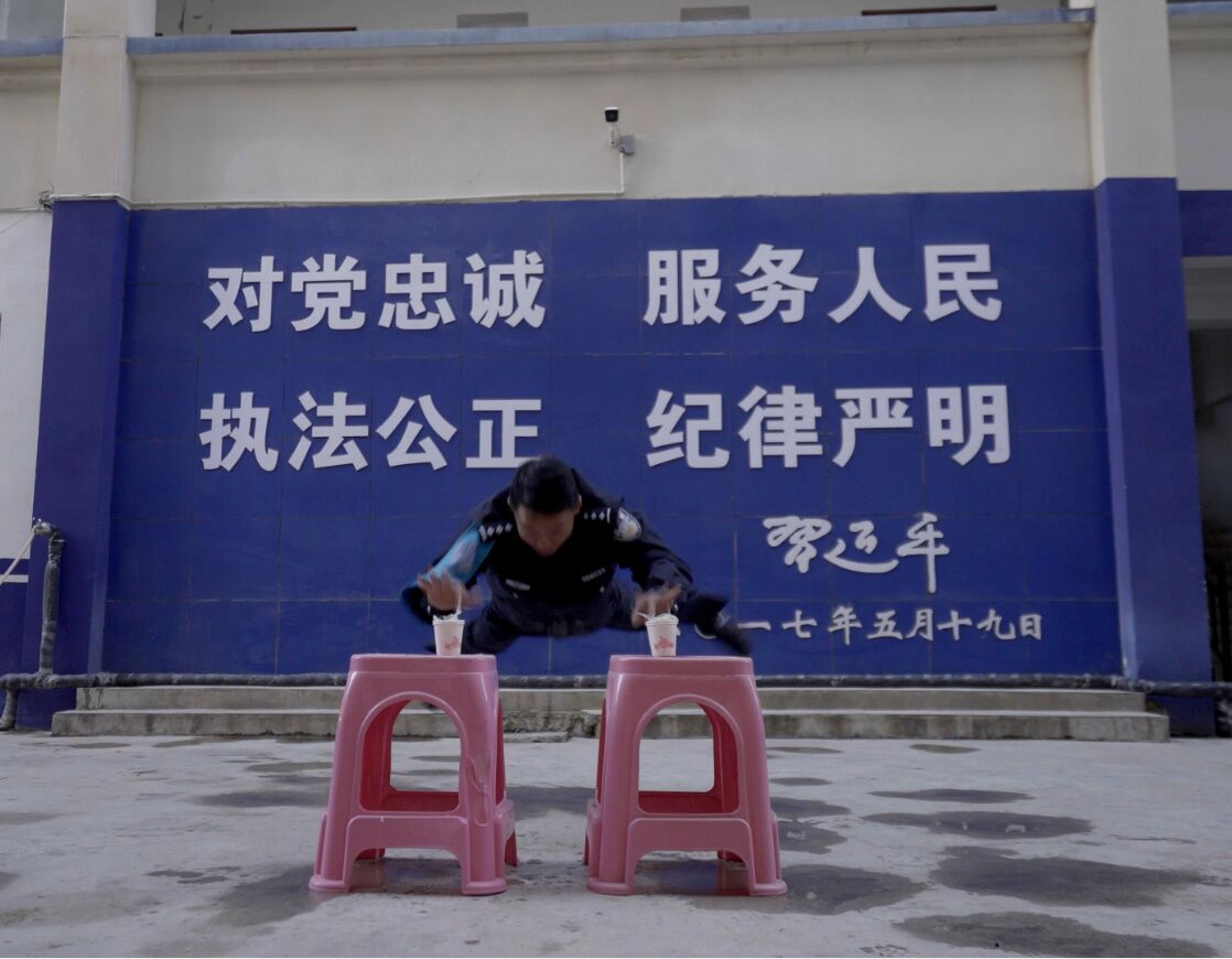 近日,四川省甘孜州白玉县公安局盖玉派出所副所长伍金多吉挑战高难度“蜻蜓点水”俯卧撑。在凳子上纸杯里放一杯水,他在双脚悬空做俯卧撑的同时,还用手去点杯子里的水,让人叹为观止,被誉为俯卧撑界的天花板。