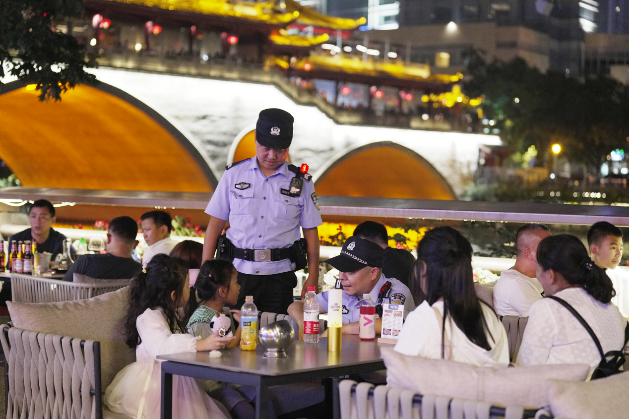 “无论是外地游客还是本地居民,很多人都喜欢在望江河边吹吹风、泡泡吧。”丝管路的“管段”民警段军2009年从交警分局调到望江路派出所后,15年来一直负责老马路社区的相关警务工作。段军说,每逢节假日来丝管路放松的人就特别多,所上也会投入更多精力在“酒吧街”和临近的望江公园、川大博物馆等景点及区域。从节前的消防安全检查、治安隐患排查,到节日期间的巡逻防控、安全守护,大家一丝不苟、全力坚守。