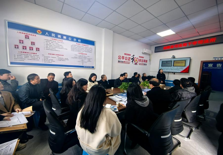 在调研期间,剑阁县司法局围绕“党建引领、机制创新、职能融合”三大主线,系统汇报了基层司法所规范化建设情况。一是强化制度保障,出台《剑阁县司法所规范化建设三年行动方案》,通过“枫桥式司法所”创建活动推动软硬件双提升。二是深化职能融合,推动司法所全面参与乡镇合法性审查、行政执法监督等工作。三是探索人民调解联动机制,推动人民调解工作高质量发展,调研组对剑阁县“司法所+‘一站式’矛调中心”联动模式及“人民调解+司法确认”等举措表示高度认可。