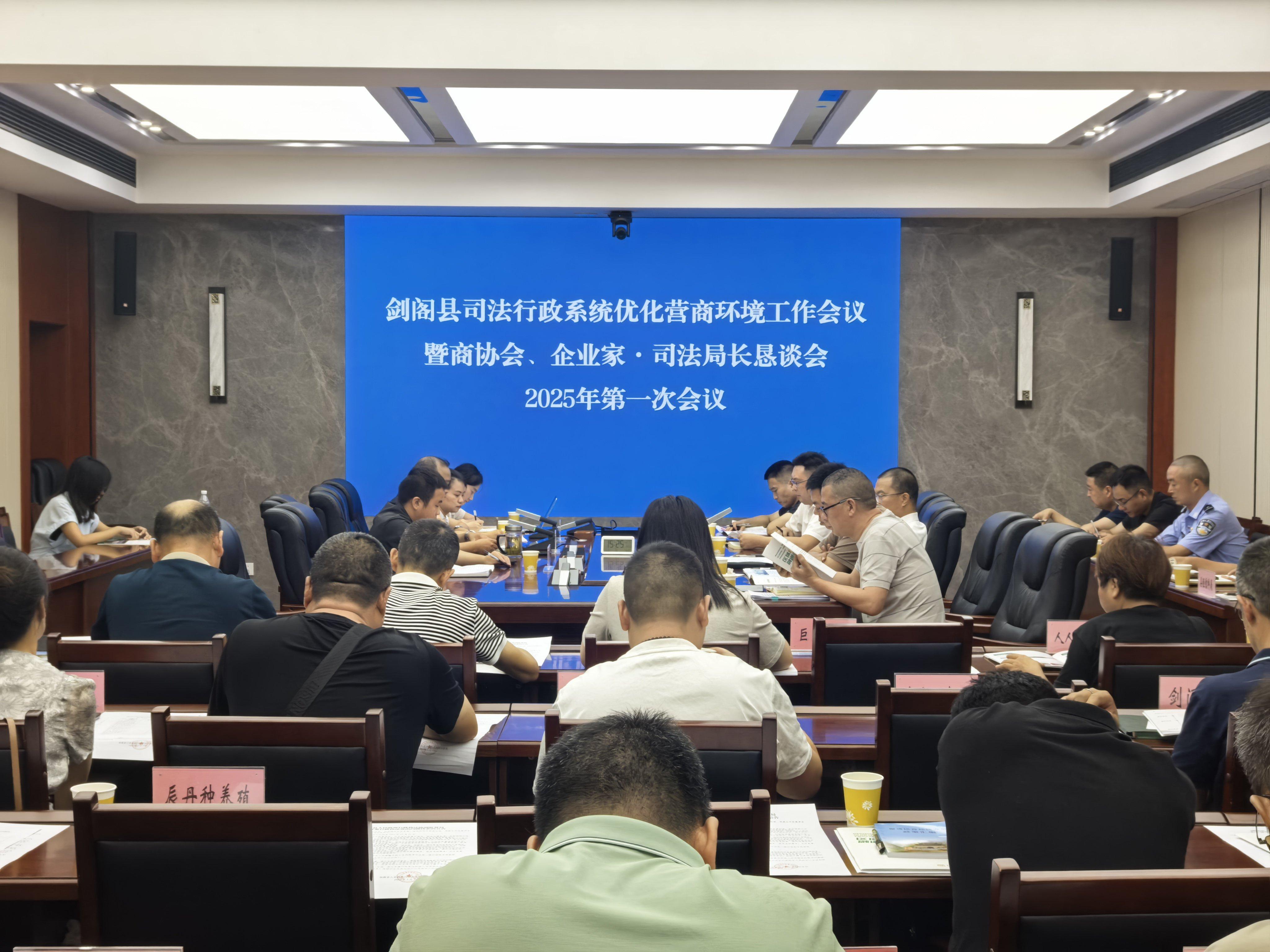 近日,四川省广元市剑阁县司法局联合县营商办召开“剑阁县司法行政系统优化营商环境暨企业家·司法局长恳谈会”。30余名商协会、企业家代表,县法院、县检察院、县公安局、县农业农村局、县经信科局(剑阁经开区)、县商合局、县交通运输局、县工商联、县营商办等部门相关领导参加会议。