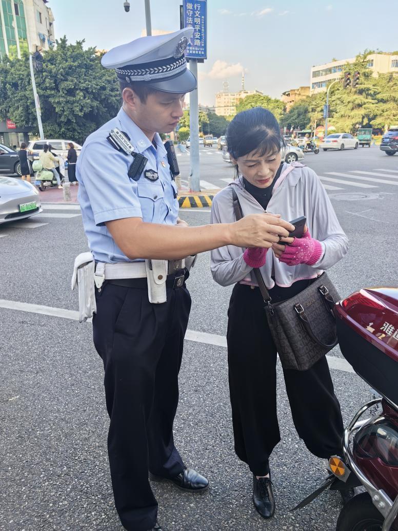 去年冬天的一个下雨天,一辆面包车为了赶时间,在路口处没有礼让行人,正好被张庚义拦下。司机停下来,递上烟笑着说:“张警官,我有点急事,你看也没有撞到别人,你就通融下呗?”张庚义却没接烟,指着车道线严肃道:“师傅,路口斑马线有行人通过时,应停一停等行人先过,斑马线是规矩,也是安全线。今天您觉得‘刹车及时’没事,要是你刹车不及时,行人也没预判到,雨天刹车慢,万一撞了,您和别人的家都得受影响。”说着,他拿出执法记录仪,仔细核对车辆信息,按规定开出罚单,又耐心给司机讲了交通风险案例。司机一开始不服气,听着听着却红了脸,最后握着张庚义的手说:“您说得对,是我图省事没把安全当回事,这罚单我认!”