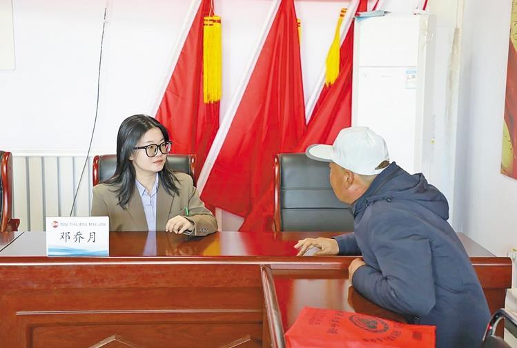 在巴彦淖尔市杭锦后旗法律援助接待窗口,青年律师邓乔月接待群众近百人次,提供婚姻家庭、劳动权益等咨询50余次,代书起诉状30余份;深入法律援助工作站,参与化解土地纠纷、奶牛养殖纠纷10余次;办理法律援助案件4件,均达到当事人预期,实现“案结事了人和”。