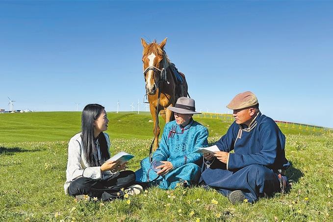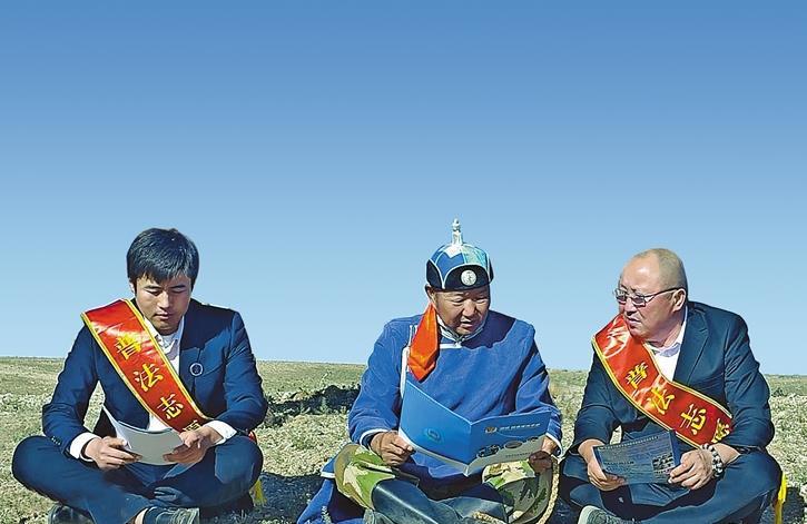 占淑莹律师(左一)在辉腾锡勒草原为牧民讲解法律知识。