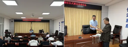聘任仪式结束后,阜城县法律援助中心工作人员围绕法律援助的服务范围、申请流程以及常见法律问题的处理要点等内容进行了培训解读。通过此次培训旨在帮助新志愿者迅速熟悉工作职责,掌握必要的服务技能和政策要求,确保后续志愿服务工作规范、高效开展。