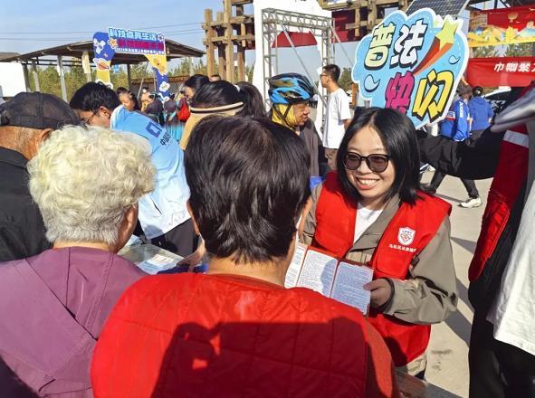 活动现场,工作人员不仅准备了《中华人民共和国民法典》《中华人民共和国法律援助法》宣传资料,更准备了精美的法律援助宣传小礼品,以通俗易懂的语言和有奖竞猜的方式为大家讲解与生活密切相关的法律知识,把专业法律知识转化为群众听得懂、用得上的“丰收保障指南”。
