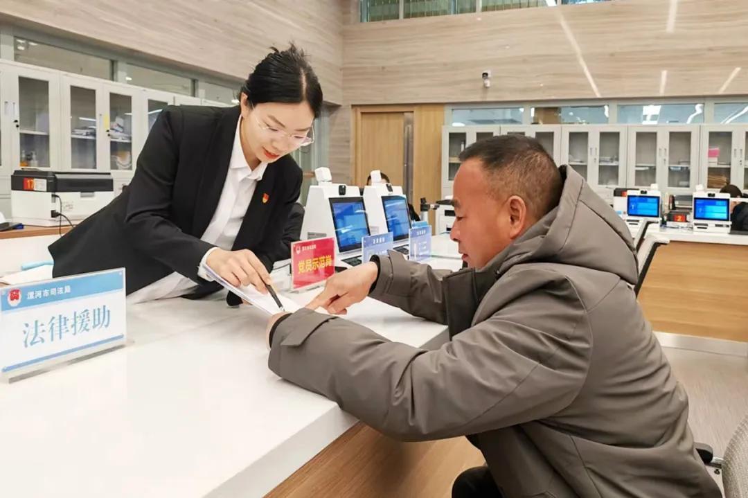 漯河市法律援助中心工作人员为群众提供法律咨询等服务。
