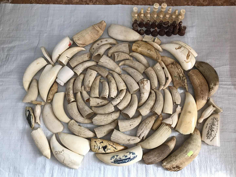 据介绍,杨某主要通过从不同渠道收购野生动物制品或原料,再转手倒卖赚取差价,其贩卖物品涉及抹香鲸牙、麝牛角、虎骨、熊爪等物品。据杨某交代,这些抹香鲸牙大部分是从江苏人冯某、沙某手中收购得到。缉私警察随即展开进一步侦查。2020年4月,缉私警察在江苏盐城、南京等地开展抓捕行动,成功抓获犯罪嫌疑人冯某及沙某,并在沙某住所查获其尚未销售的抹香鲸牙制品2.85千克。