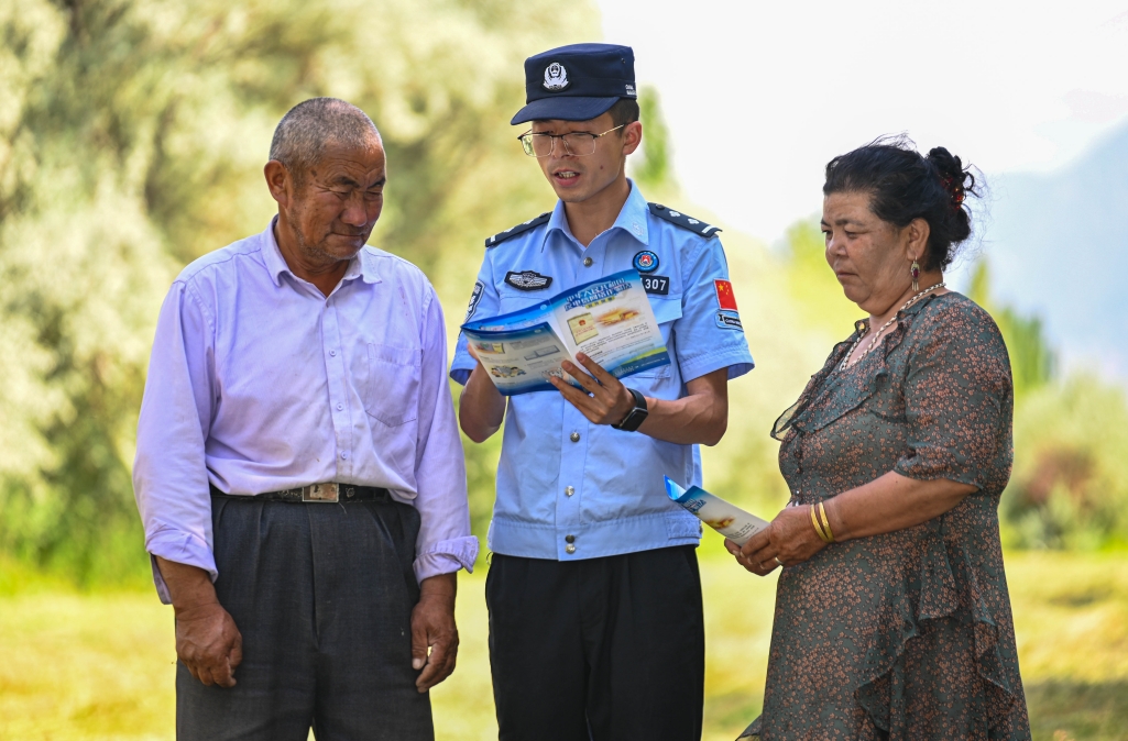 7月9日,新疆出入境边防检查总站克州边境管理支队膘尔托考依边境派出所民警走进辖区、村社,开展反诈宣传活动。民警为居民发放防范电信网络诈骗宣传手册等反诈宣传资料,从多角度向居民分析电信网络诈骗的特点、种类、危害性及防范技巧,进一步提升辖区群众的自我防护意识。