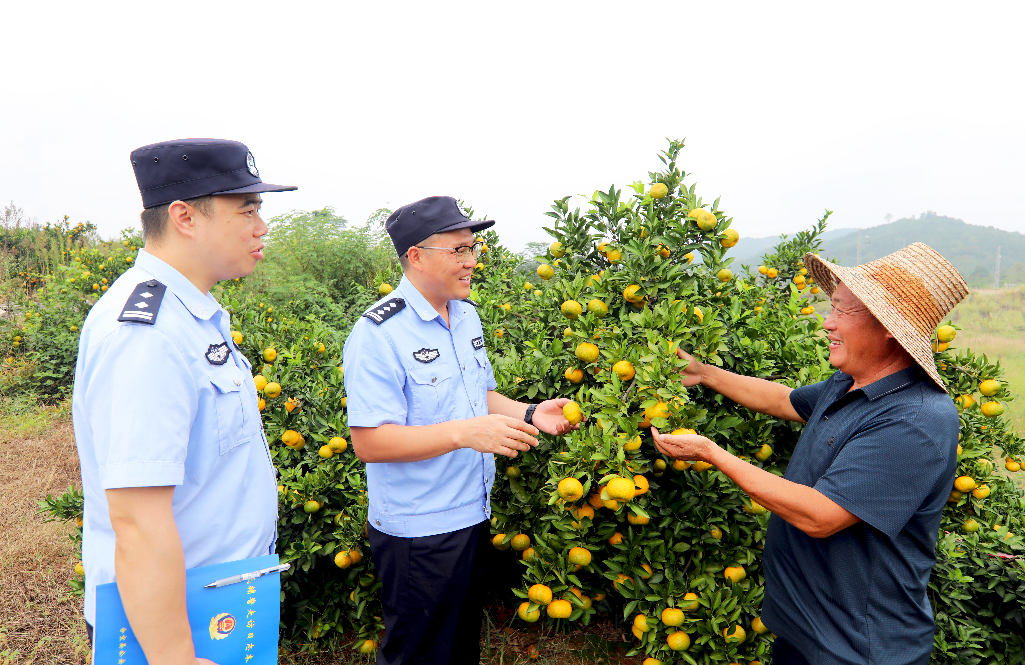 金秋时节,江西省分宜县双林镇蜜桔种植基地喜迎丰收。为促进当地特色果业健康发展,分宜县公安局双林派出所立足辖区产业特色,组织民辅警深入果园基地开展治安巡逻、反诈宣传、矛盾化解、助农服务等工作,将基层警务工作延伸至田间地头,为乡村特色产业发展保驾护航。