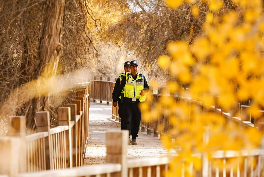 为确保此次活动安全、有序、圆满进行,沙雅县公安局全警动员,以“守护文旅新动能,筑牢安全防线”为目标,提前谋划,周密部署,联合文旅、应急、交通等多部门协同作战,为文旅盛会的顺利举行提供了坚实保障。金色胡杨与闪耀警徽在沙雁洲交相辉映,构成了一道独特而亮丽的风景线。