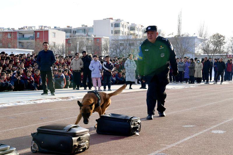 另一边,警犬演示区域同样人气爆棚。训导员带着训练有素的警犬登场,瞬间吸引了全体师生的目光。在训导员的指令下,警犬依次展示了服从指令、搜爆排查等科目,动作迅猛精准、配合默契无间。演示过程中,训导员还向同学们讲解了警犬的品种、训练日常,不少同学主动提问,近距离观察警犬,感受人与犬之间的默契与坚守,现场掌声此起彼伏。